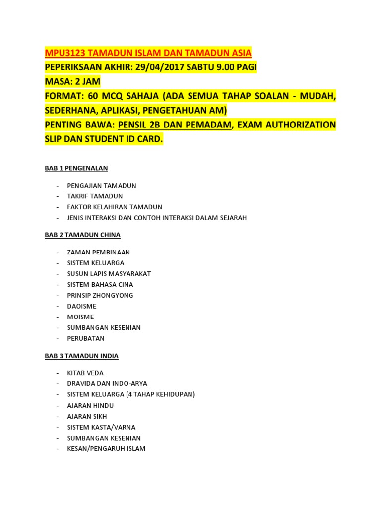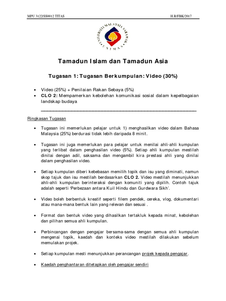 Titas Assignment Mpu3123 Tamadun Islam Dan Tamadun Asia Tar Uc Thinkswap